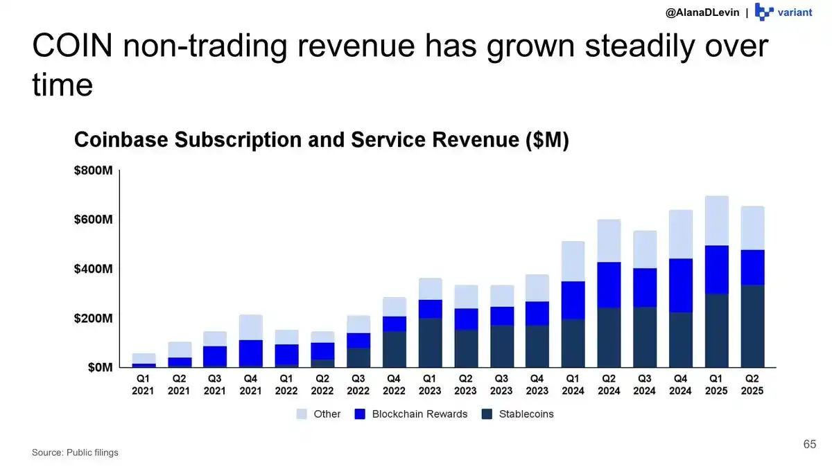 交易所是复合型业务。像 @Coinbase 这样的公司围绕用户的二级需求构建了强大的业务线,例如托管服务、质押服务以及收益产品。
